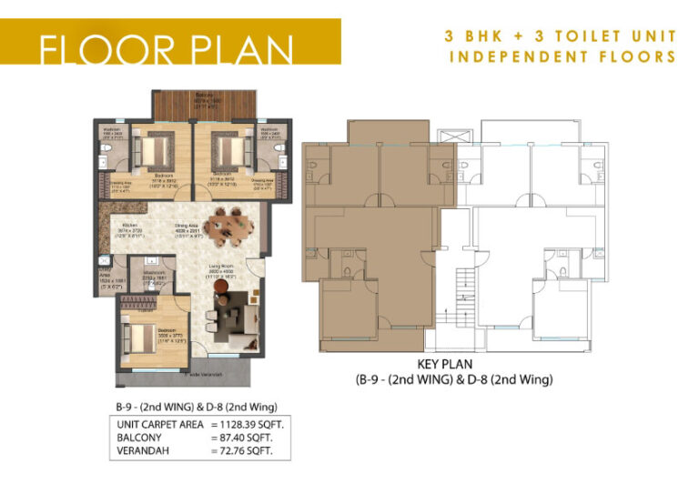 Elegant independent floors, constructed within a low-rise G+4 structure, and majestic high rise towers of 13 floors are crafted to the highest specifications, featuring unique distinctive character that exudes harmony, peaceful living, and privacy. The thoughtful design prioritizes open-plan living spaces that seamlessly extend into balconies, ensuring that natural light and air ventilation flow abundantly throughout the apartments, enhancing the sense of spaciousness and well-being.